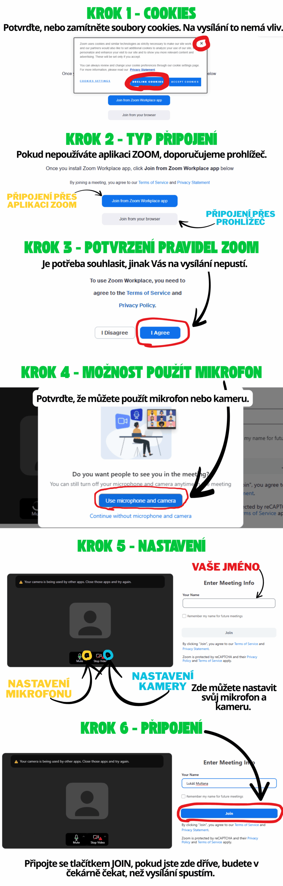 Nápověda pro připojení k ZOOM vysílání.